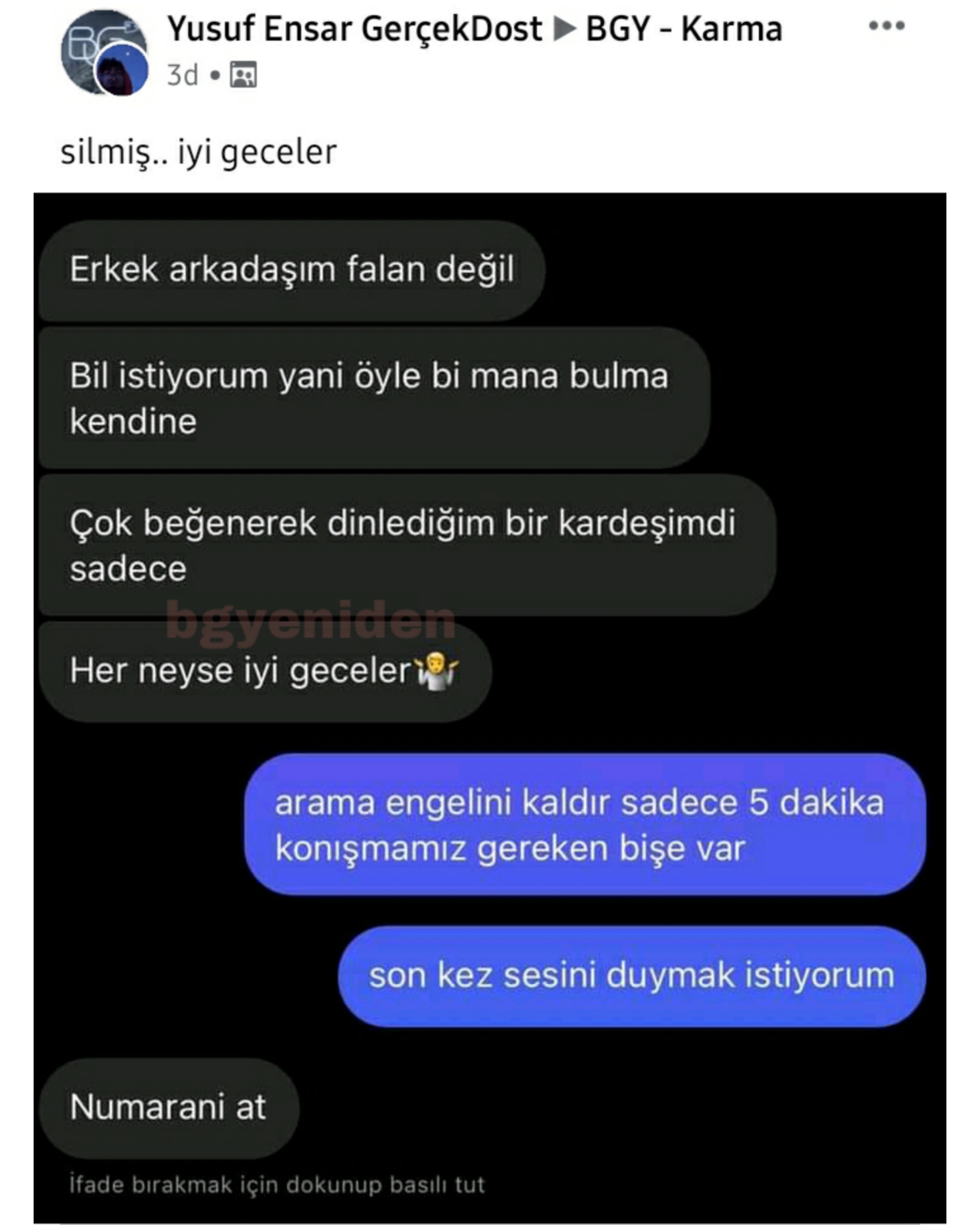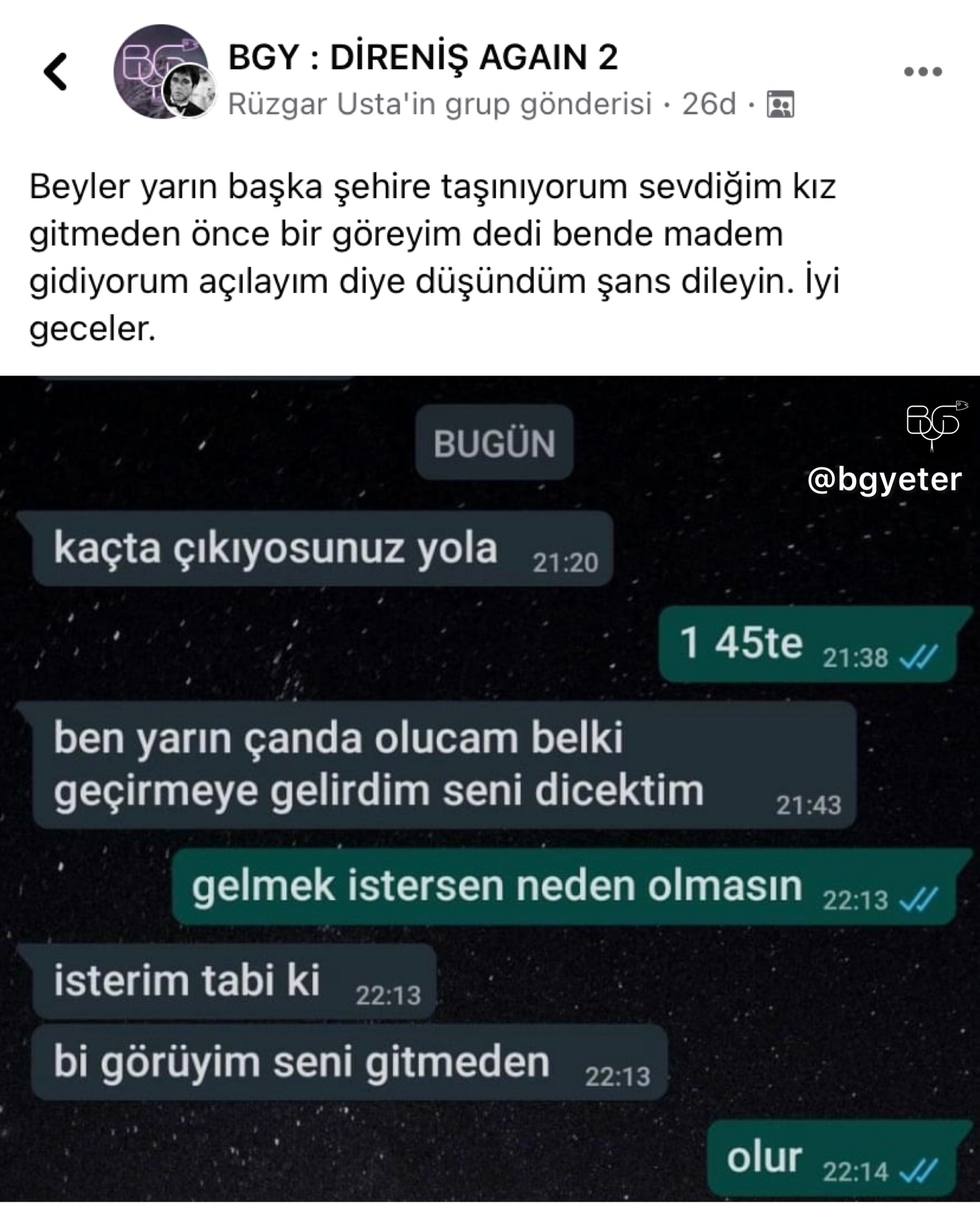 BGY, Facebook'ta Bugünlük Bu Kadar Grup Yeter adıyla faaliyet gösteren ve yönetimini Ömer Serdar Özkan ile Mert Güngördü'nün üstlenmiş olduğu bir topluluktur. Amacı tamamiyle '' mizah '' olan bu topluluk zamanla güçlenmiş ve 16-25 yaş aralığının en aktif katılım gösterdiği sosyal grup haline gelmiştir.
