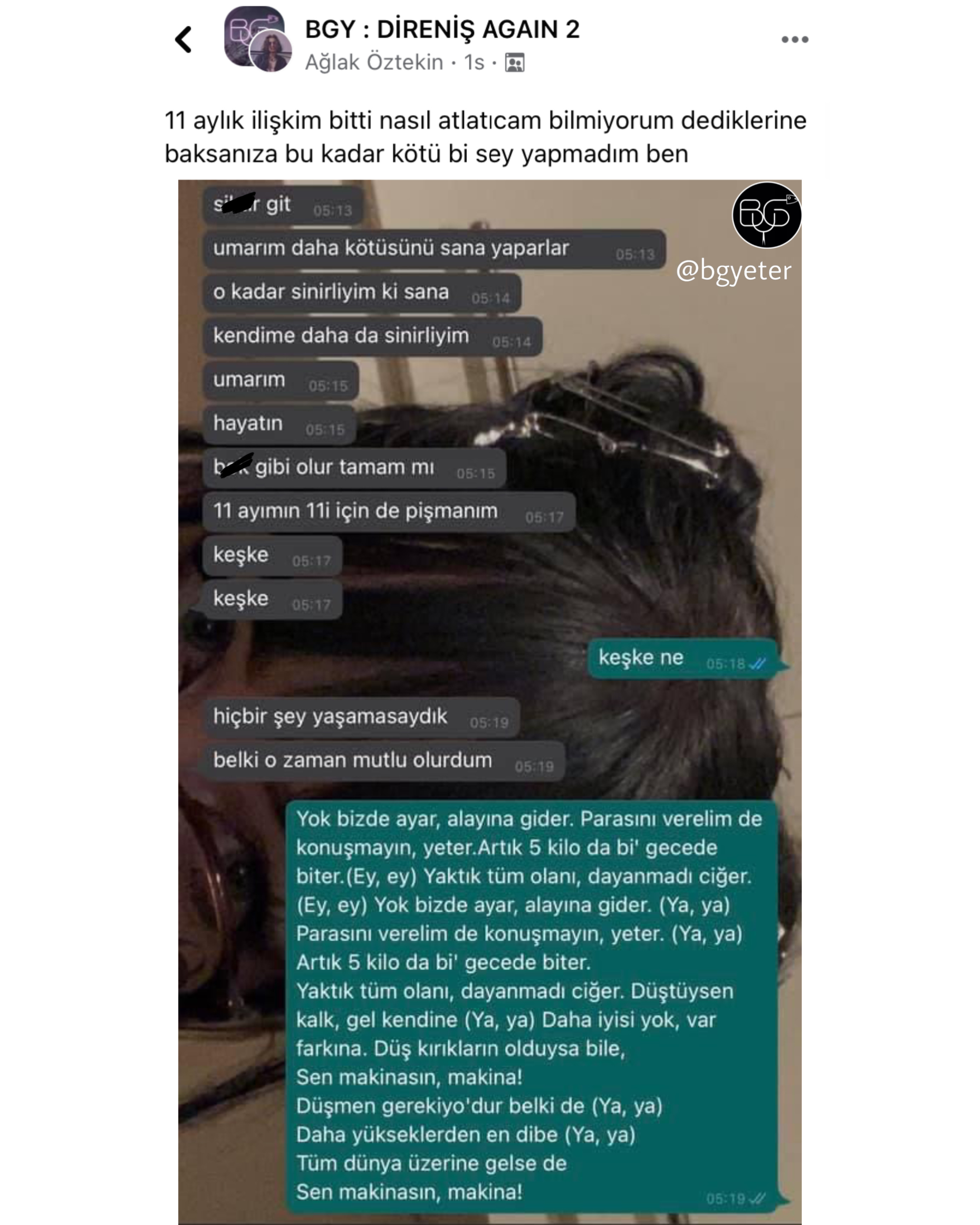 An itibariyle toplam 350 bin kişiyi geçen üye sayısı, sahip olduğu tüm hesaplar düşünüldüğünde 5 milyonu bulan takipçisi ve 6 aktif grubu vardır. Facebook üzerinde zamanla ihtiyaçtan doğan bu grupları şöyle sıralamak mümkündür: BGY: Direniş Again, BGY: Sports , Bugünlük Ders Yeter , BGY: Gaming , BGY: Stonks ve BGY: Karma. BGY ve aslında BGY’li olmak yani bir aidiyet hissetmek bu topluluğun gücü açısından oldukça önemlidir. Çünkü BGY’liler mizah ile her türlü takdir ve eleştiriyi yansıtabilirler; herhangi bir konudaki kızgınlık, üzgünlük ya da mutluluk gibi duygularını mizah aracılığıyla gösterebilirler. Kısacacı gücünü toplam sayısı ve kitlesindeki aktiflikten alan grup, Z kuşağının gerçekçi bir örneğidir.