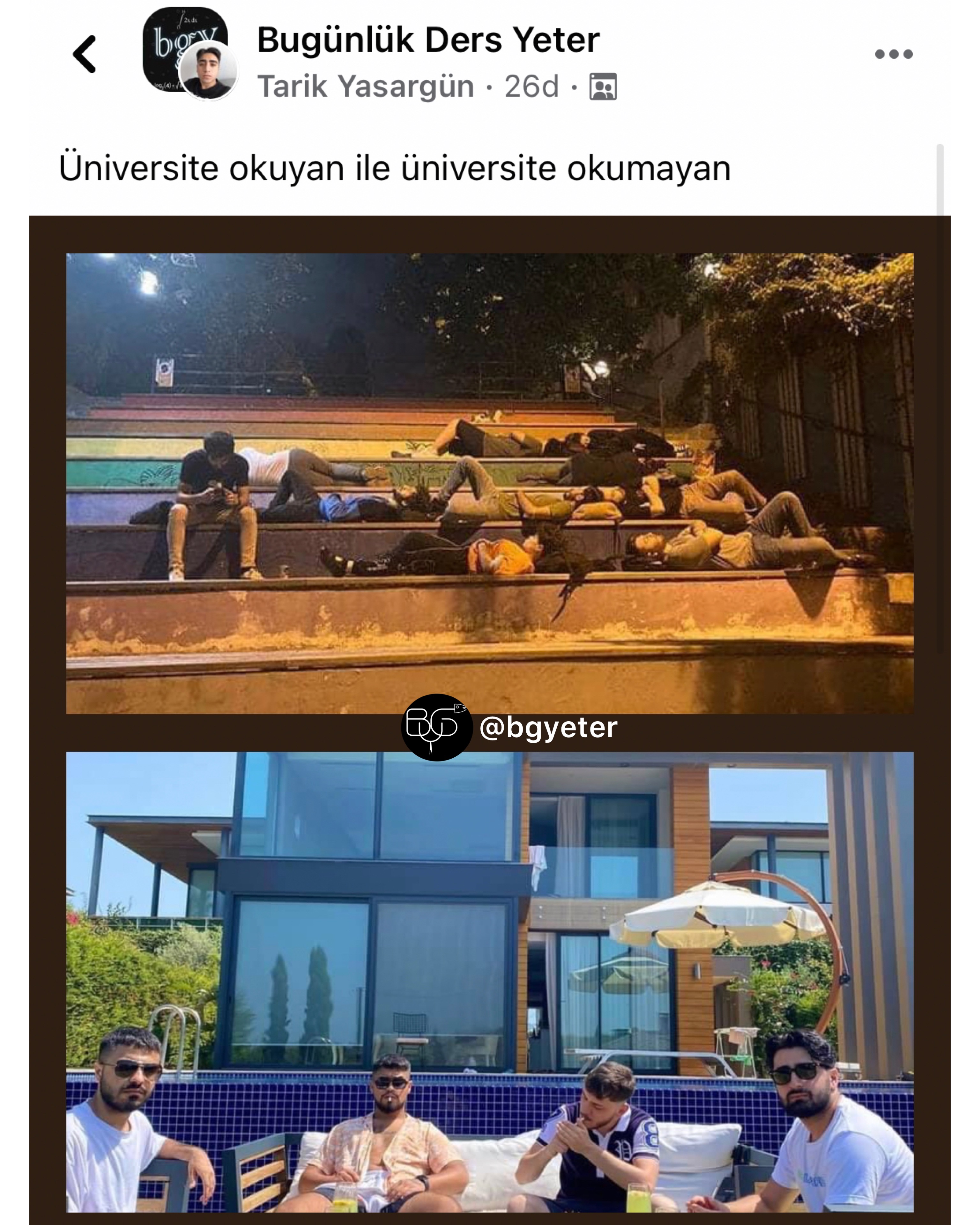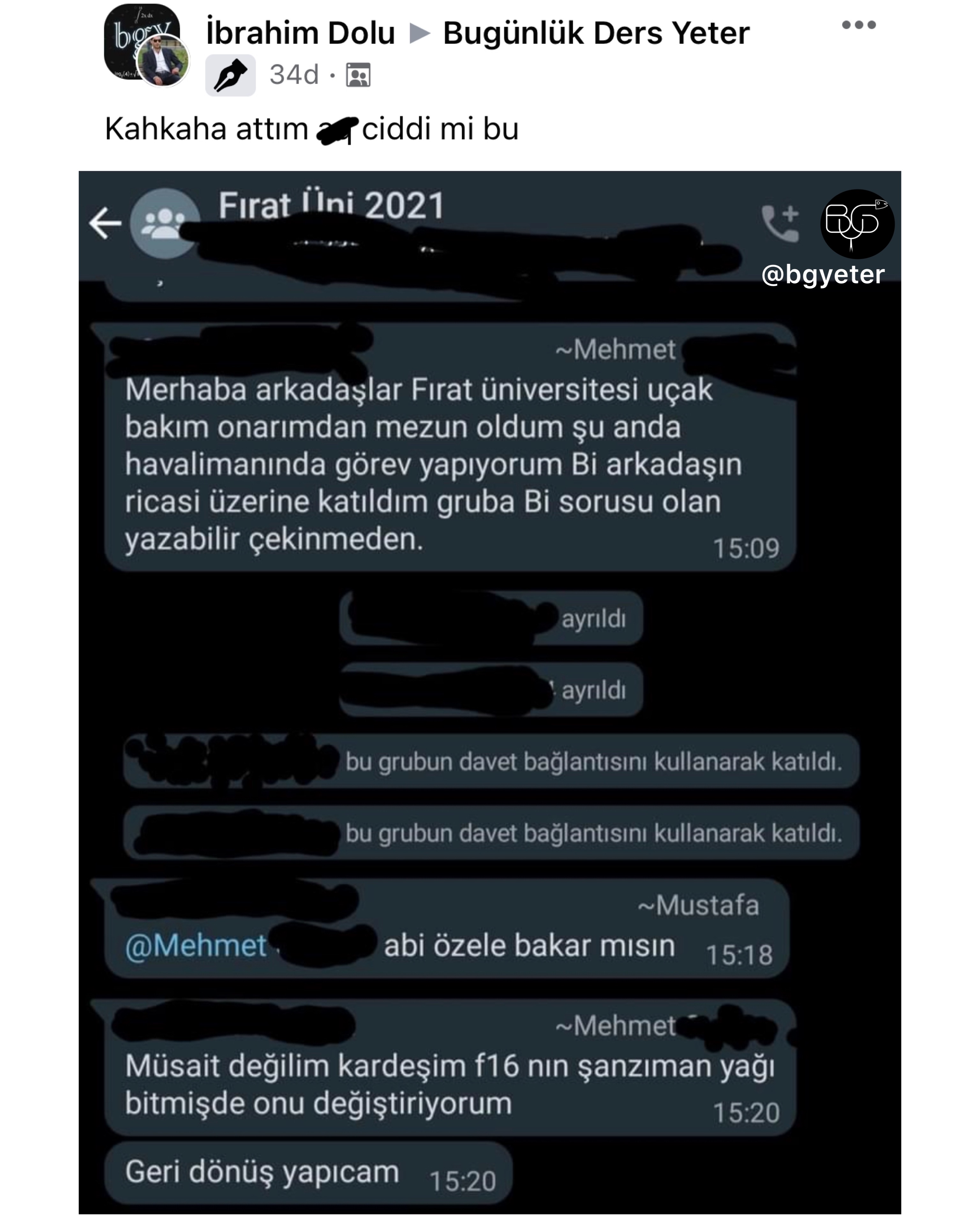BGY, Facebook'ta Bugünlük Bu Kadar Grup Yeter adıyla faaliyet gösteren ve yönetimini Ömer Serdar Özkan ile Mert Güngördü'nün üstlenmiş olduğu bir topluluktur. Amacı tamamiyle '' mizah '' olan bu topluluk zamanla güçlenmiş ve 16-25 yaş aralığının en aktif katılım gösterdiği sosyal grup haline gelmiştir.